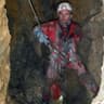 Entrée de la grotte. On commence avec une main courante et une vire le long de la falaise extérieure avant de tomber sur l’entrée de la grotte "genre comme ça" (merci Adèle pour les détails). À noter : la présence de Patricia l’araignée, maîtresse des lieux.